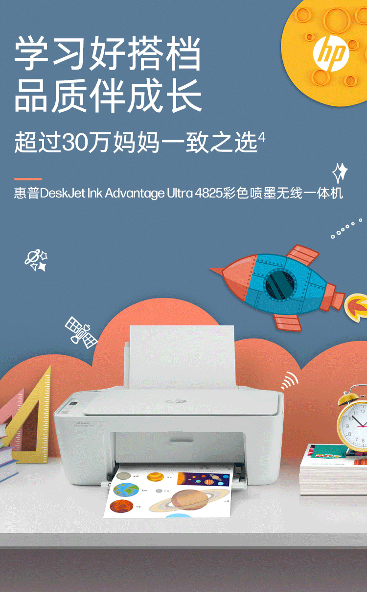 惠普(HP)DJ 4825彩色无线喷墨打印机家用 大印量低成本照片打印机学生家用 微信打印(打印 复印 扫描)