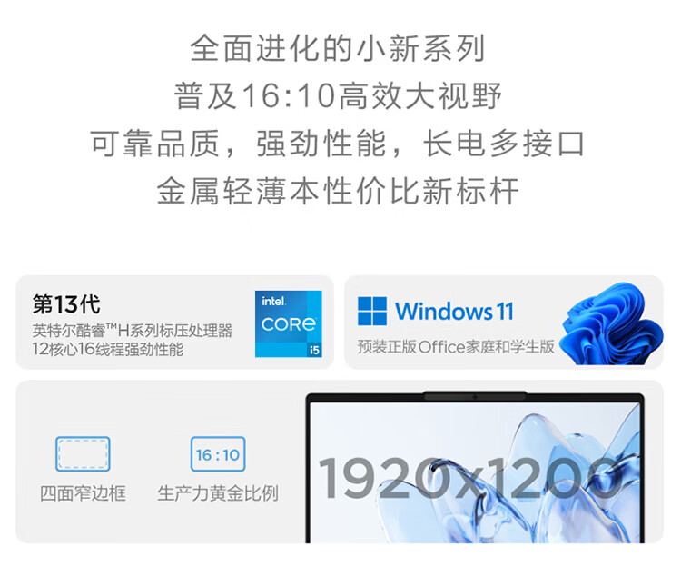商品名称:联想笔记本电脑小新14轻薄本 英特尔酷睿i5 14英寸超薄本(13代标压i5-13500H 16G 512G)灰 商务办公学生