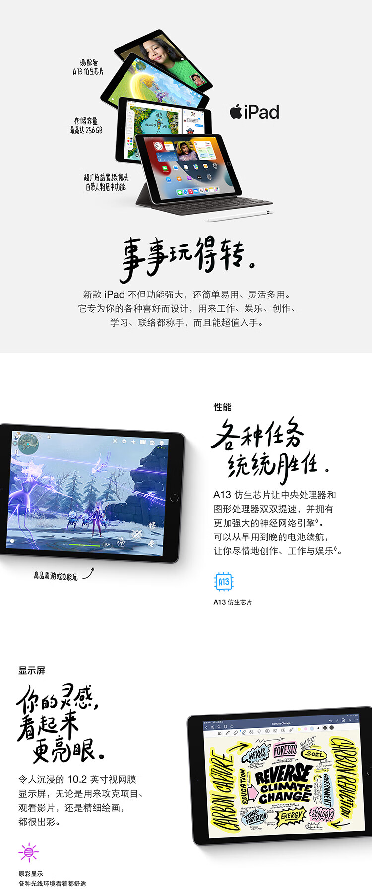 商品名称:Apple iPad(第 9 代)10.2英寸平板电脑 2021年款(64GB WLAN版/学习办公娱乐游戏/MK2K3CH/A)深空灰色