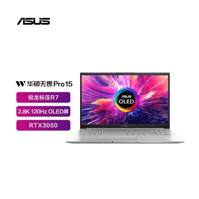 华硕无畏Pro15 2.8K 120Hz OLED屏新锐龙标压游戏轻薄笔记本电脑(R7-6800H 16G 512G RTX3050高色域)银