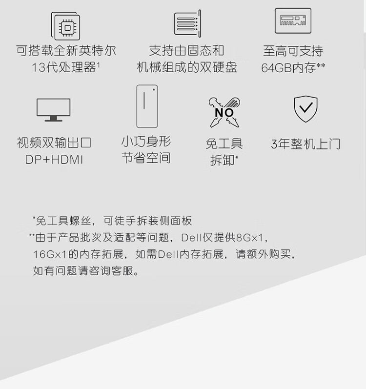 戴尔(Dell)成就3020台式机电脑主机 商用办公电脑整机...