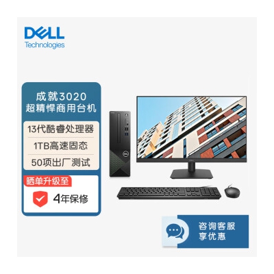 戴尔(Dell)成就3020台式机电脑主机 商用办公电脑整机 (13代i5-13400 16G 1TBSSD)23.8英寸